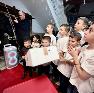 The atmosphere at the Good Samaritan Children's Home was filled with excitement as the children gathered in the main hall. The program began with the kids singing beautiful Christmas songs first in Hungarian, then in Ukrainian., their voices echoing through the room and spreading holiday cheer. It was heartwarming to see. Just listen to that angelic, clear voice.
