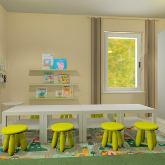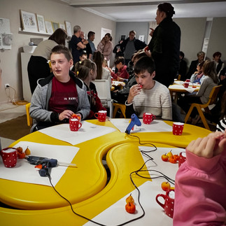And somehow, in four hours, an empty room is magically transformed into a vibrant and cozy community center - and gets immediately claimed by the children.
